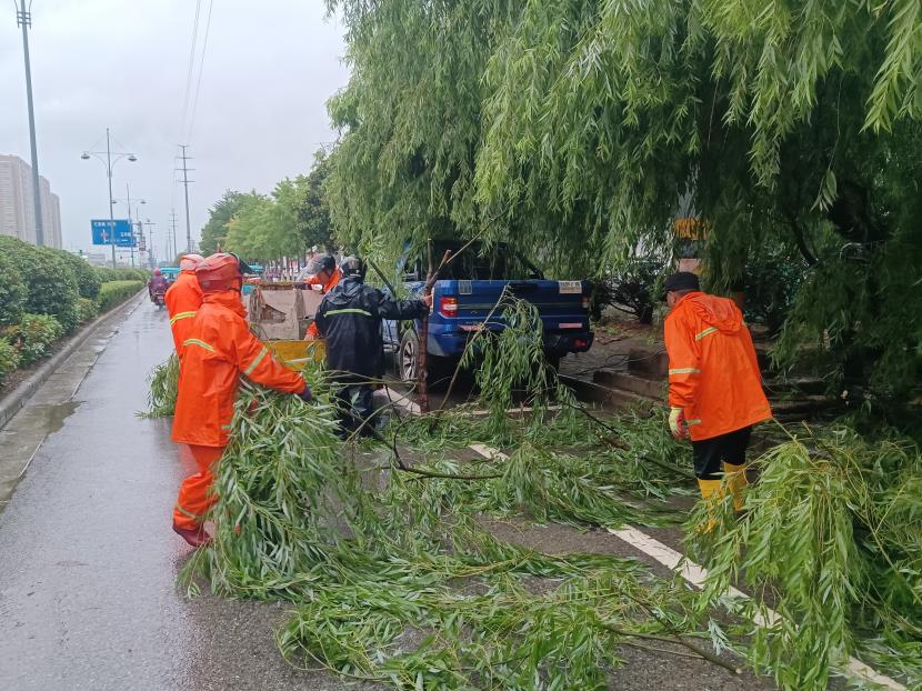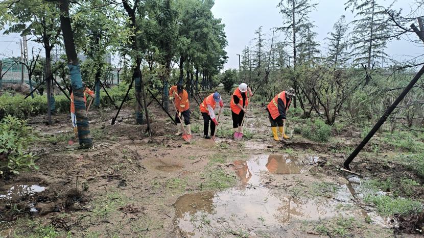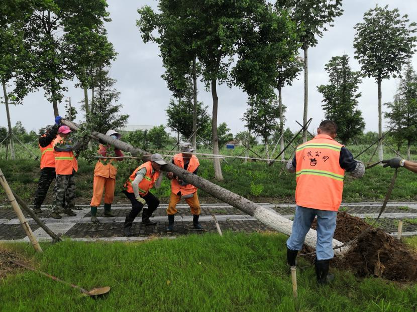 绿化分公司全力以赴筑牢汛期“安全网”,迅速开展应急处理,加大现场巡查力度,及时进行排涝清淤、树木扶正、强基加固,全力排除险情,保障树木、苗木安度汛期。截至20日17时,出动巡查人员 56人次,巡查车、高架车、货车等车辆 24车次,扶正移栽倒伏树木 70 株,修剪断枝 12株,加固支撑168株。对云池路、玉竹路、汇晶路等22处路段排涝清淤,及时消除辖区内安全隐患,保障了市民出行安全,巩固了城市绿化成果。