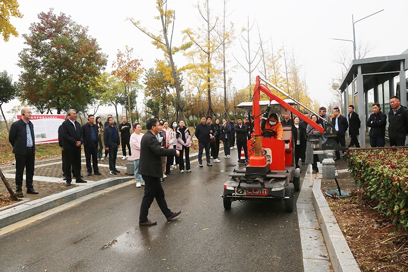 在汇晶路绿化作业现场,绿化分公司负责人分享了绿化分公司在“班组承包制管理”“绿化养护机械化与智能化”等方面的成功经验,围绕三亿sanyi(中国)公司“组织精健化、管理精细化、经营精益化”三精化管理要求,进一步降低人工成本,提高工作效率,提升养护质量,跑出了科学的养护“加速度”,日常养护作业效率和安全系数得到“双提升”。