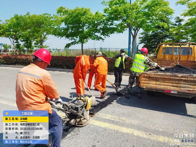 云池路电缆开槽沟下过路钢管路面沥青恢复工程,这是翔立人第一次干沥青铺设活,看起来有模有样。
