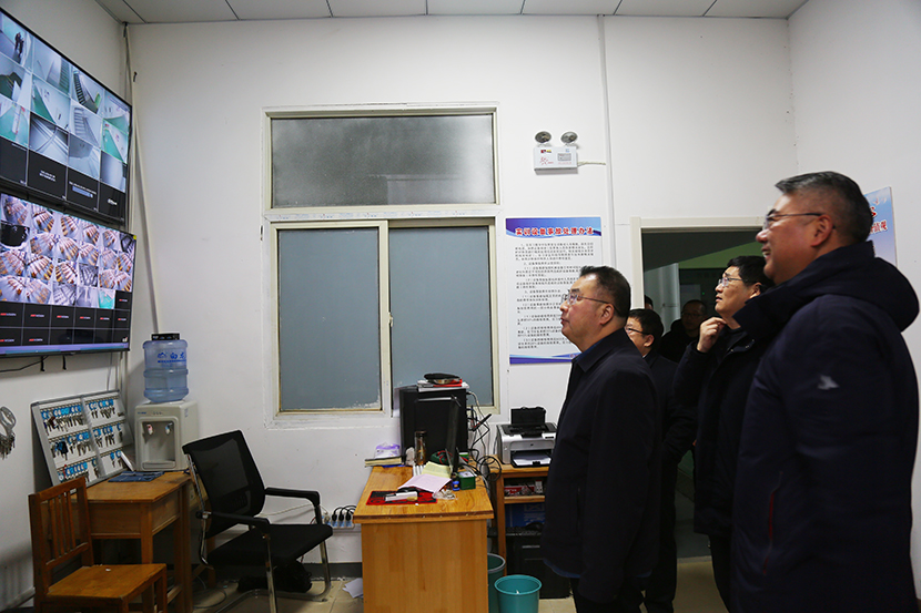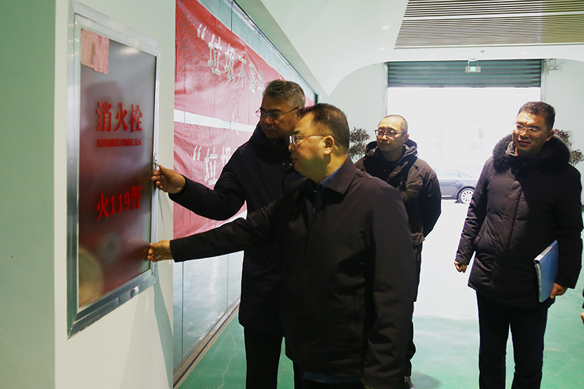 1月31日下午,三亿sanyi(中国)公司党委副书记戴鸿鸣安全检查组一行,冒雨到投资公司开展节前安全检查,公司党委书记、董事长、总经理王德志,安环部部长李明等陪同检查。