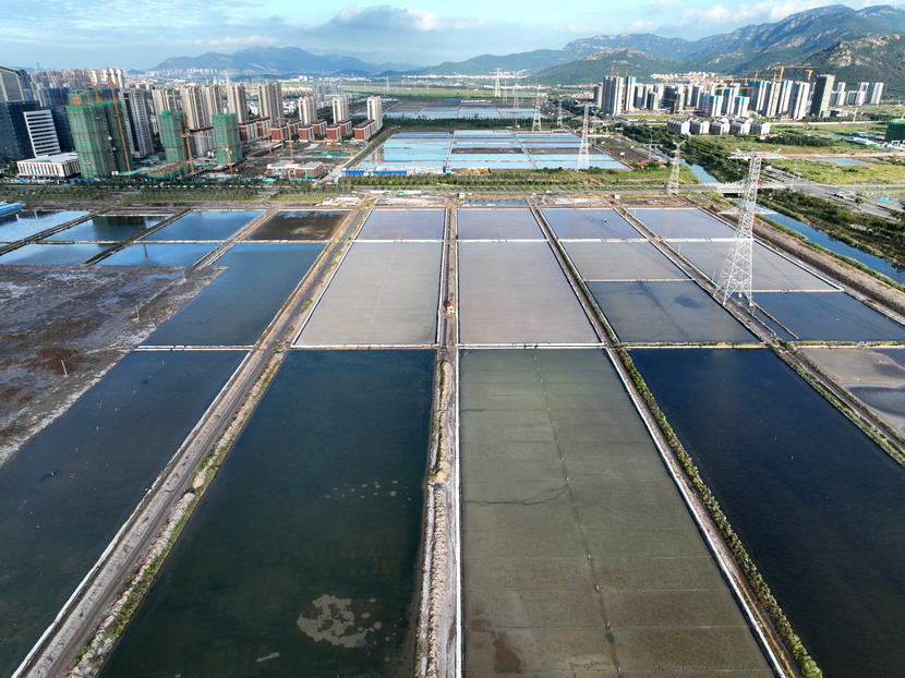 9月21日,从空中俯瞰海州湾公司的盐田,犹如一块块调色板。