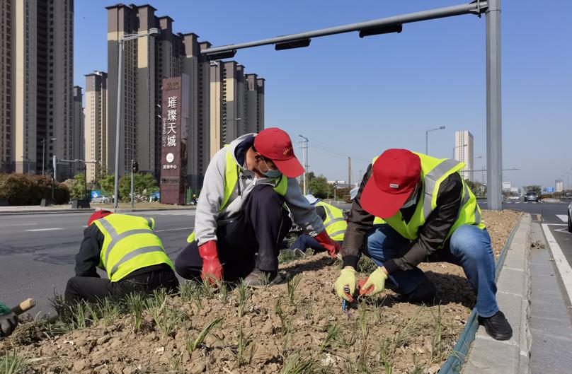 华茂公司草花地块换植工程现场,全公司上下以紧急组织人手加班加点抢工期。由于工期短任务重,公司机关和各基层单位员工纷纷请战,主动放弃假期投入到绿化工程的加班现场,用他们勤劳的双手为道路铺上一片片绿意,他们头顶烈日,不畏艰辛,为大干二季度实现半年红而努力拼搏。