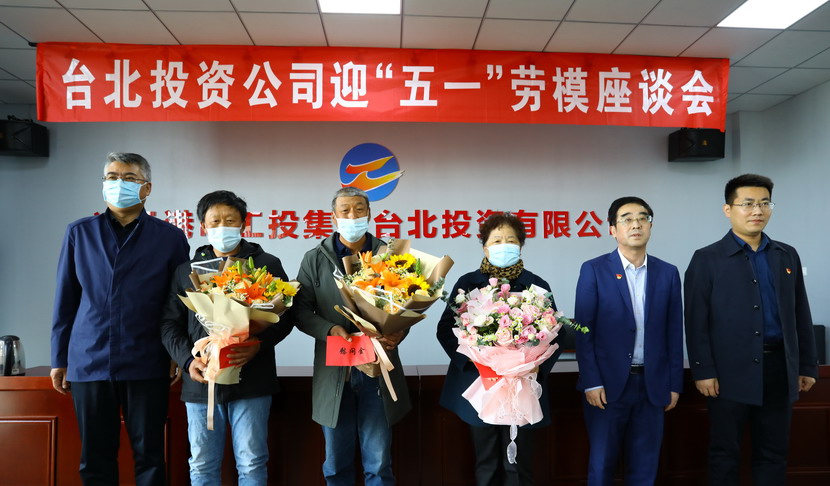 会上,公司领导为三位劳模送上鲜花和慰问金。