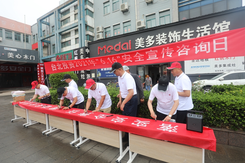 今年6月是第20个全国安全宣传月。6月16日,投资公司领导班子全员参加,围绕“落实安全责任,推动安全发展”主题,组织20余名安全管理人员在光伸建材广场开展“6.16安全生产宣传咨询日”活动。