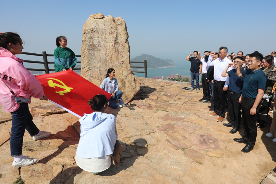 大家在桅尖口石碑前,仔细聆听了工作人员讲述了当年连云港港保卫战的“一寸山河 一寸血”。随后在曾经无数抗战英雄抛头颅洒热血的地方,全体党员重温了入党誓词,向党和英烈们许下的“谨记昔日举国伤痛,不忘牺牲砥砺前行”的誓言。