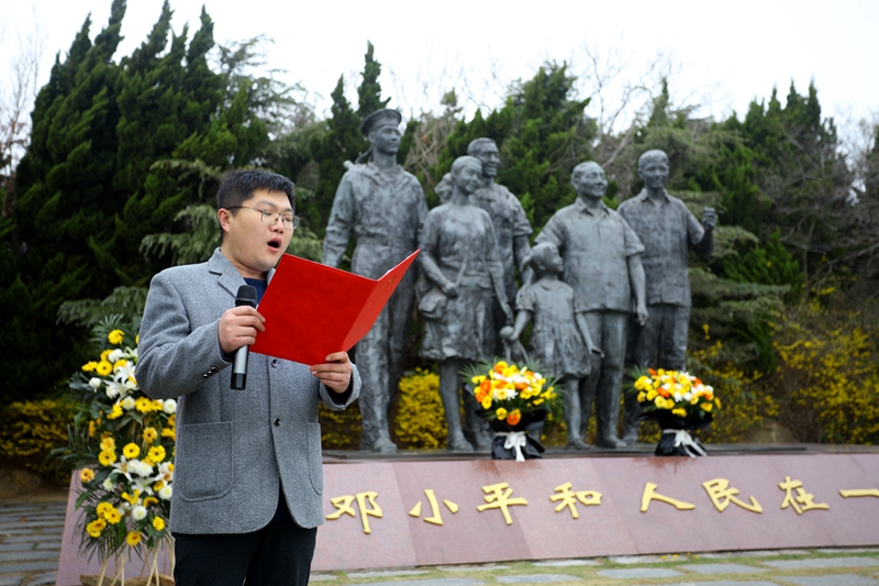 全体党员在“邓爷爷”雕塑前结队献花、鞠躬致意、重温入党誓词。党委副书记杨善革结合伟人和中国共产党的光辉历程、投资公司当前发展的实际和首要任务为大家上了一堂“实景”党课。