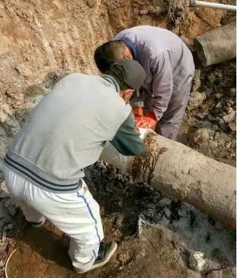 镜头三:东输灌西的钙液管道因使用年久老化,在新东方大道路下的穿越自然损坏,为了不影响钙液销售,抢修工作正“马不停蹄”!