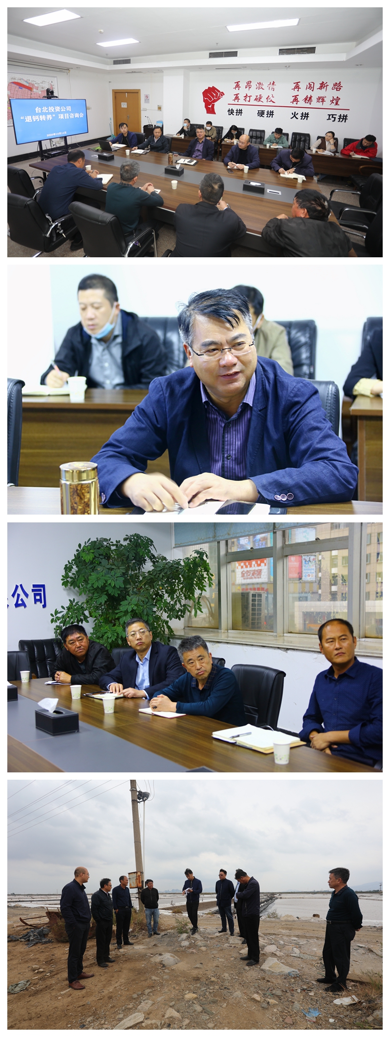 专家组一行首先来到了公司转养工程现场——海州湾公司开太生产班组,实地查看了解了地形、地势、排水等各方面情况。在随后召开的座谈会中,投资公司董事长、总经理向专家组介绍了公司的基本情况,副总经理柳艳麟介绍了“退钙转养”项目实施情况,专家组认真分析了该工程的发展前景以及存在问题,并分别围绕的技术、规划等问题进行了现场解答、指导。