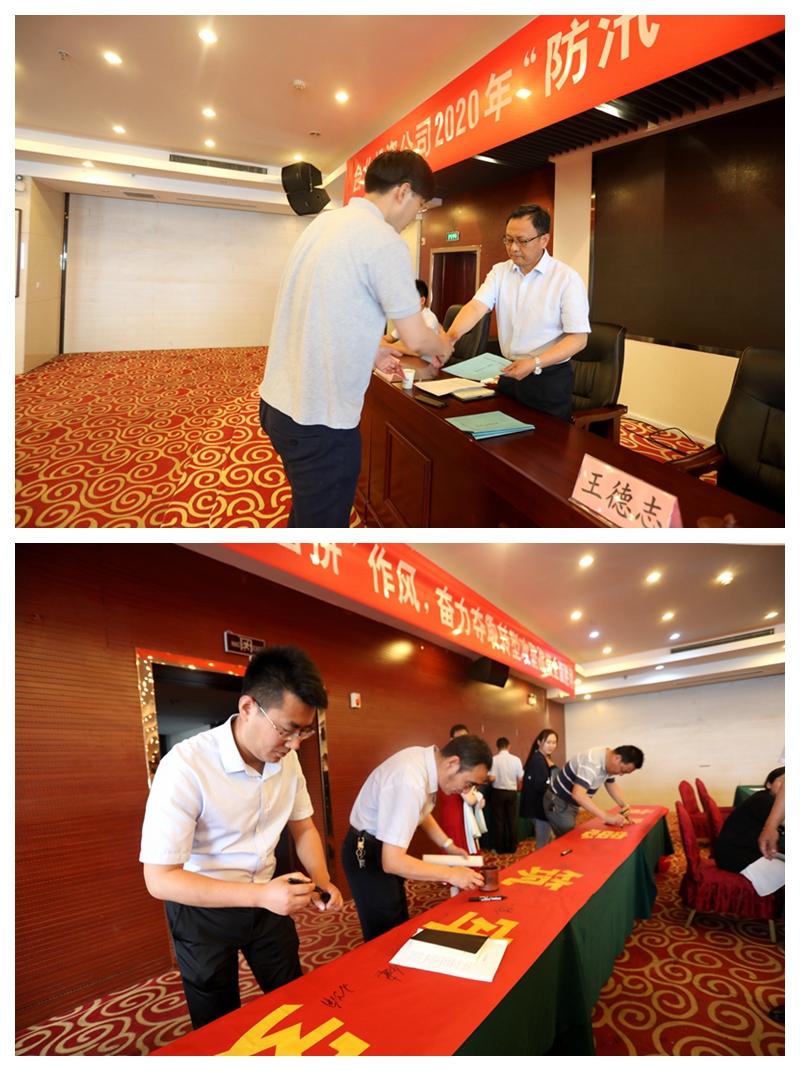 会上各单位还分别递交了防汛责任书,全体参会人员进行了安全承诺签名。