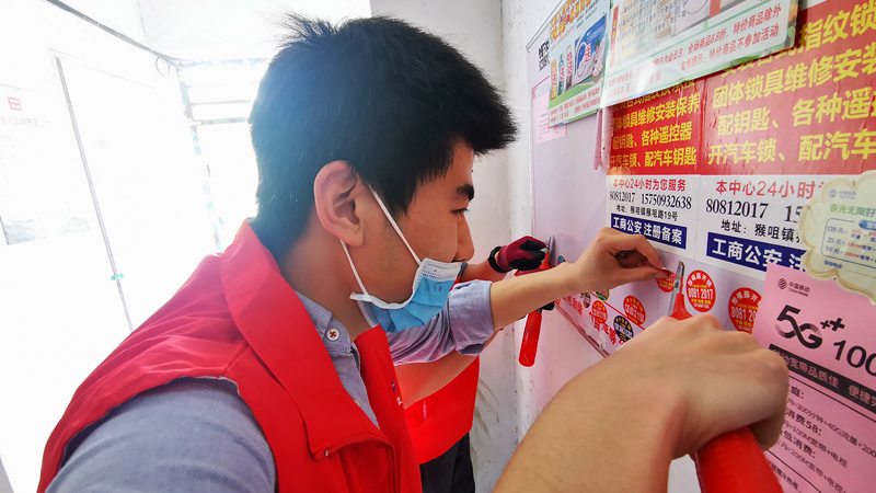 水淋、撕铲、涂抹,志愿者们“奇招百出”对小区墙面、电线杆等处张贴、喷涂的小广告进行全面清理。35度的高温下,汗流浃背的大伙收获的不仅是小区“脸面”焕然一新后劳动的喜悦,还有结识志同道合的新朋友通力协作的“战友情”。