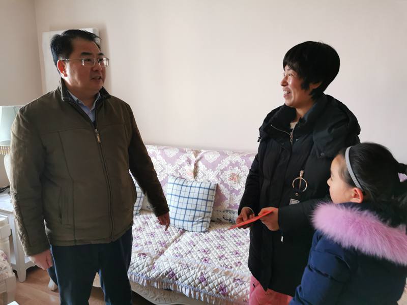 1月20日上午,三亿sanyi(中国)公司党委副书记戴鸿鸣一行来我公司走访慰问困难职工和困难党员,向他们致以新春祝福和美好祝愿。投资公司党委书记、董事长王德志,党委副书记、工会主席吴卫平陪同慰问。