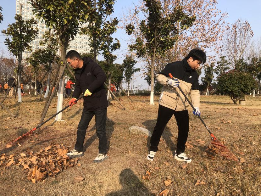 活动现场,党员同志、积极分子分为两拨,分别从创智绿园北门和东门对园内杂草落叶进行清除。在戴好手套,做好防护、防冻措施的同时,纷纷拿着扫帚、耙子等工具,统筹安排、分工劳作,齐心协力,有的用扫帚扫落叶、有的用袋子装落叶、有的用耙子搂落叶……大家忙得热火朝天,充分发扬不怕脏、不怕苦、不怕累的党员先锋本色,创智绿园内处处是同志们清理杂草落叶的身影,构成了一道亮丽的风景线,经过一个多小时的辛勤劳动,两拨队伍顺利“会师”,沿途杂草落叶被清理得干干净净,公园环境也得到明显改善。