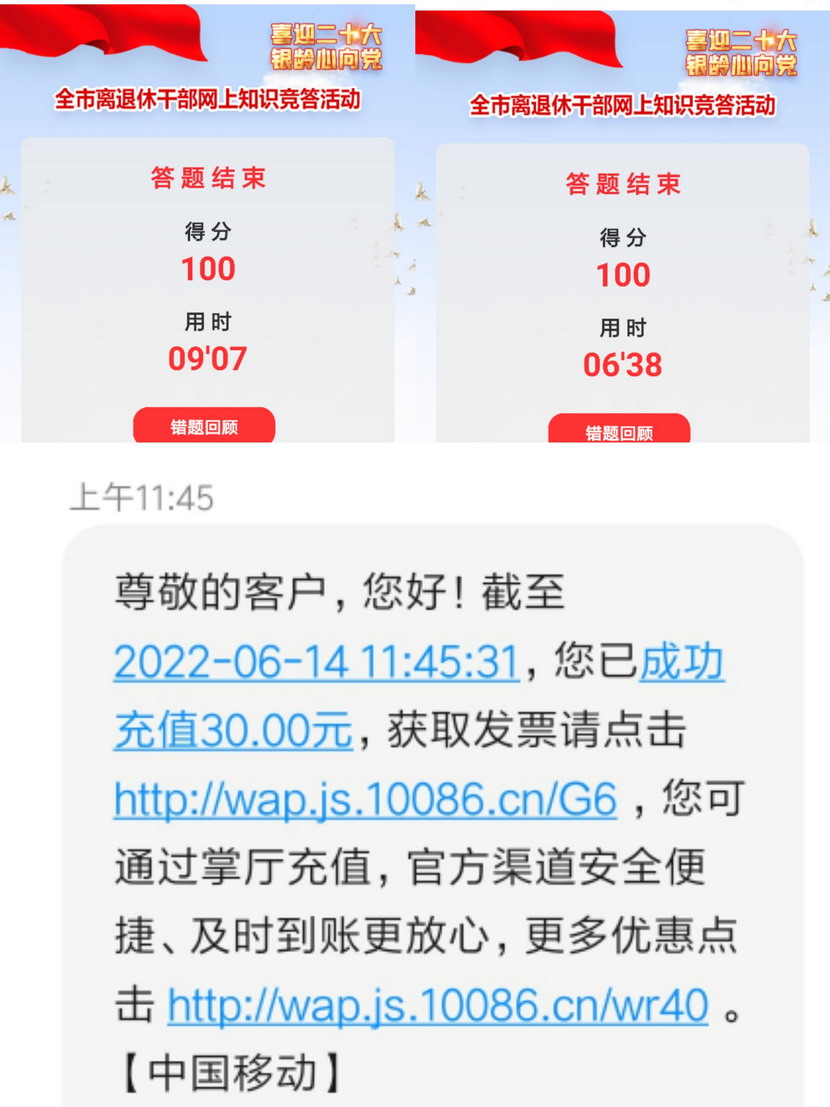 猴嘴办事处对此次答题活动高度重视,动员猴嘴办事处人员积极参与答题活动,并引导鼓励离休老干部积极参加答题活动。经过七天的连续网上奋战答题,获奖评选结果于6月13日揭晓,猴嘴办事处张克娟同志喜进第一周获奖人员名单,并且已收到了30元的话费充值奖励。获奖本人表示,将把此次竞答奖励转化为学习的再生动力,再接再厉,以学促行,推动服务能力再提升。