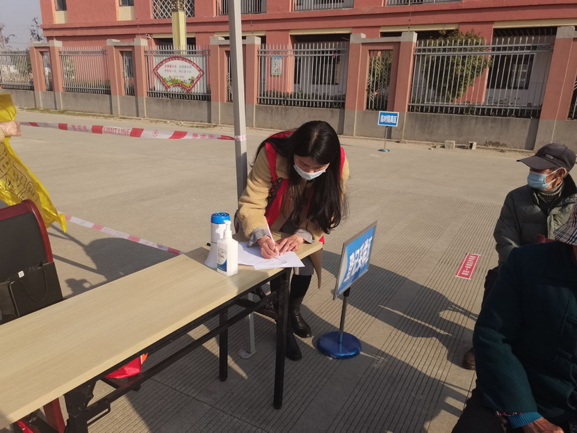 ▲(左起,海州湾党支部副书记苏玲、医护人员、海州湾女工胡超)