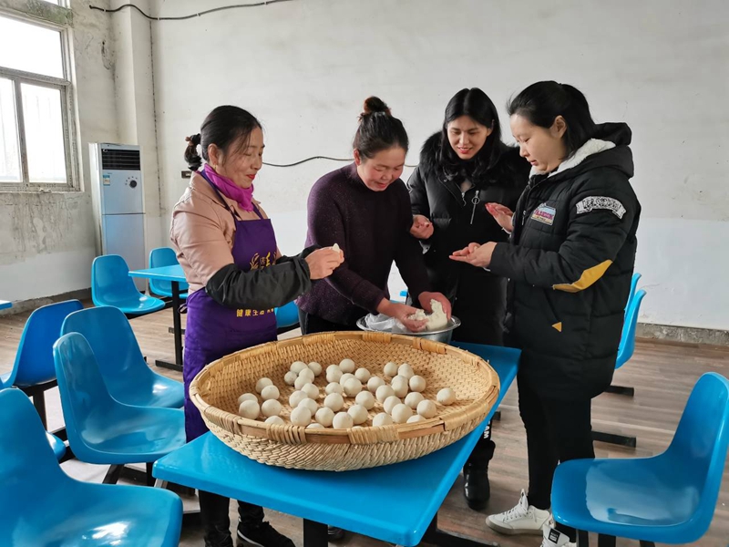 海州湾工会开展“包汤圆,送温馨”活动
