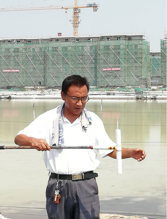 复晒滩的成品钙液收储工作至关重要!钙液质量的好坏将直接影响着钙液的市场销售。孙克春深知这个道理,也感觉到自己肩上担子的分量。带着这份责任和担当,工作中任劳任怨,兢兢业业,带领班组人员奋战在生产第一线。尤其是在钙液销量旺季,他整天忙碌格间调卤跑水,精确测量进塘卤水波美度,严格控制质量关,保证高浓度高标准的成品钙液销售。在他的工作日志里,从没有节假日和休息日之分。不计较个人得失,不叫苦不喊累,从不抱怨。风雨天更是身先士卒带领全班组人员奋斗在防风排涝一线,确保钙液浓度不降低,为正常钙液发放提供有力保障。