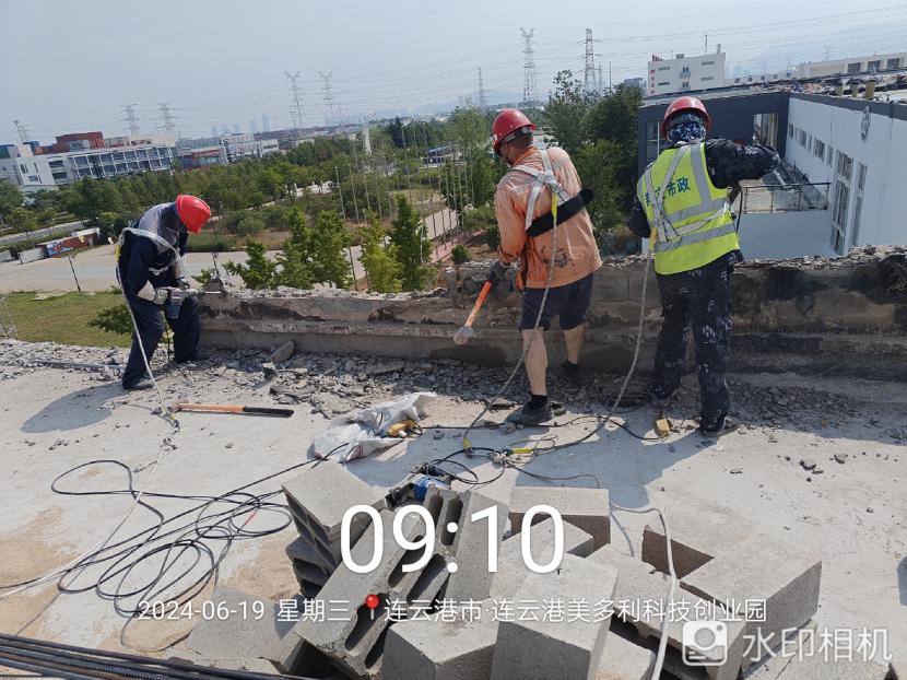 在炎炎夏日的高温炙烤下,翔立分公司市政班组的工人们仍然坚守在美多利厂房的楼顶,进行着一项重要的安全隐患整治工作——外凸女儿墙的拆除。在这场与高温和危险的较量中,他们不仅展现了顽强拼搏的精神,更用实际行动诠释了安全生产的重要性。