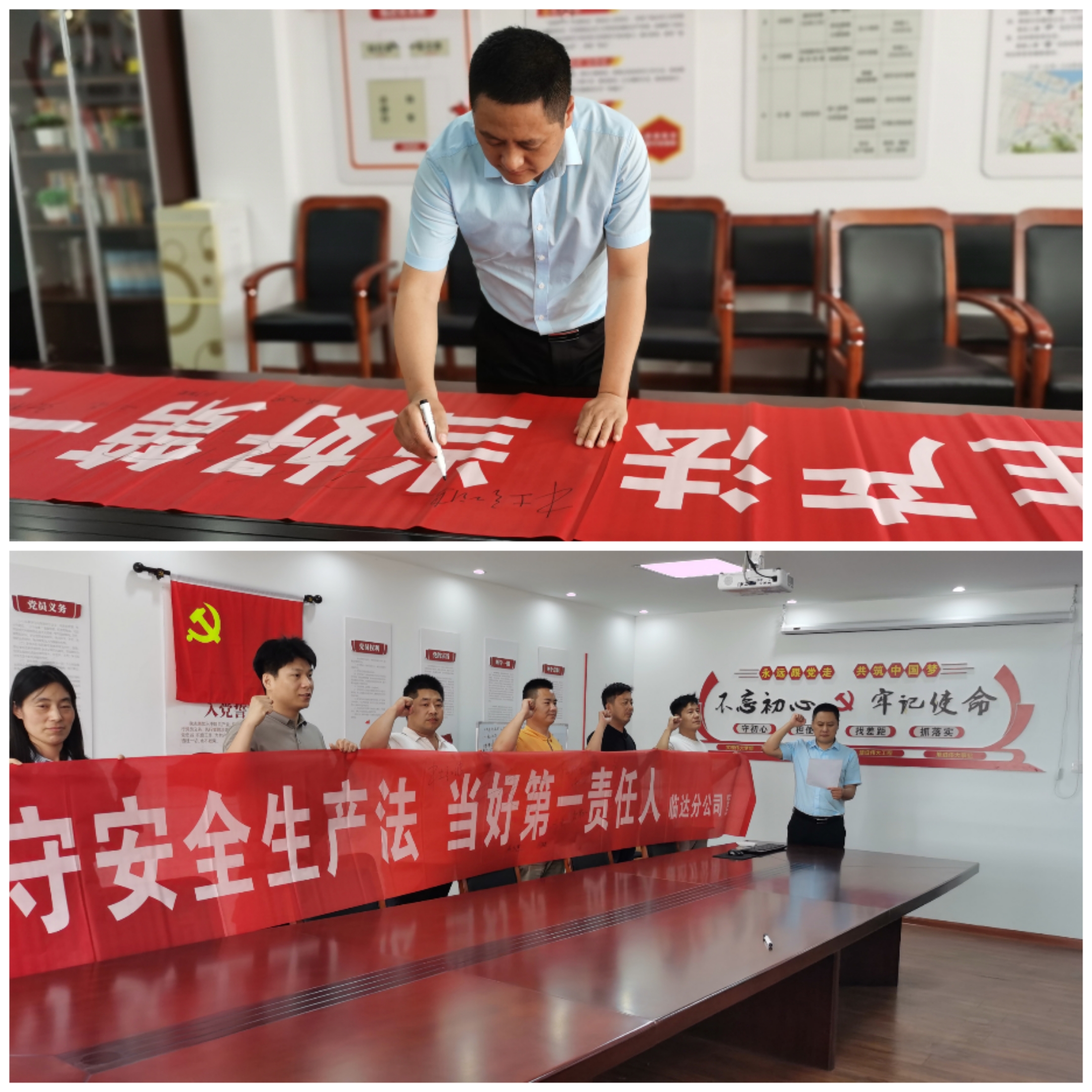 6月7日上午11时,在公司会议室,临达分公司员工一起举起右手,一字一句的宣誓,字字铿锵有力,掷地有声。用铮铮誓言铭记安全责任,牢筑安全生产防线,为全力抓好公司的安全工作保驾护航,向党的二十大献礼。