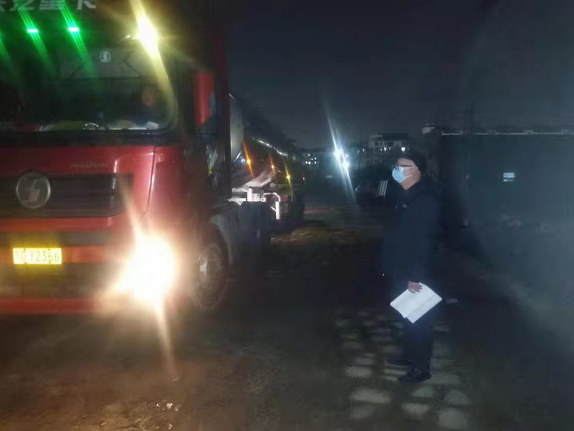 在登记信息的过程中,公司纪检专员孙健细心的发现驾驶人员的不对劲,“师傅,您看起来很疲惫,是身体不舒服吗?”“小伙子观察真是细致,我只是太饿了,闭环管理规定驾驶员不准离车,所以我从盐城出来4个多小时还没有吃晚饭。”“师傅,您稍等一下,我去给您买份快餐,再给您烧壶热水!”当驾驶员吃完快餐,钙液车也装货结束,此时已是晚上940分,按照“方案”规定,“大白”程辉对车辆进行离场消杀,并拍摄相应消杀照片,上传系统。