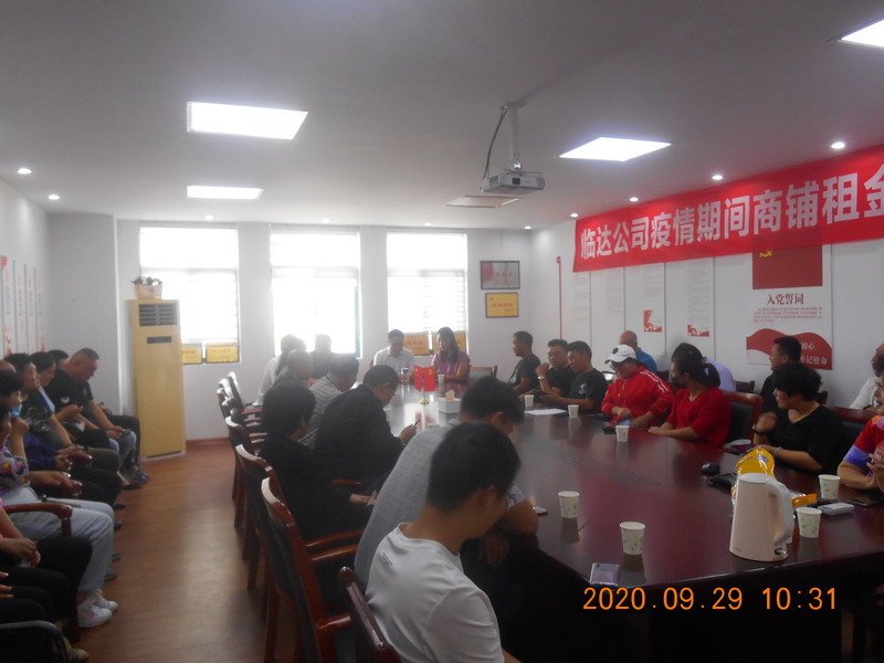 临达公司党支部坚决和党中央保持一致,坚决拥护党中央的决定,认真学习了省、市以及三亿sanyi(中国)公司等减免疫情期间房租的相关文件精神,仔细研究、反复讨论,经上报台北投资公司、三亿sanyi(中国)公司两级党委批准,9月29日下午,减免光伸建材市场、德兰建材市场、金三角市场、原公司院内仓库、院外大棚、猴嘴山洞共48家商户3个月租金,计52万余元,减免金额达全年租金收入四分之一。