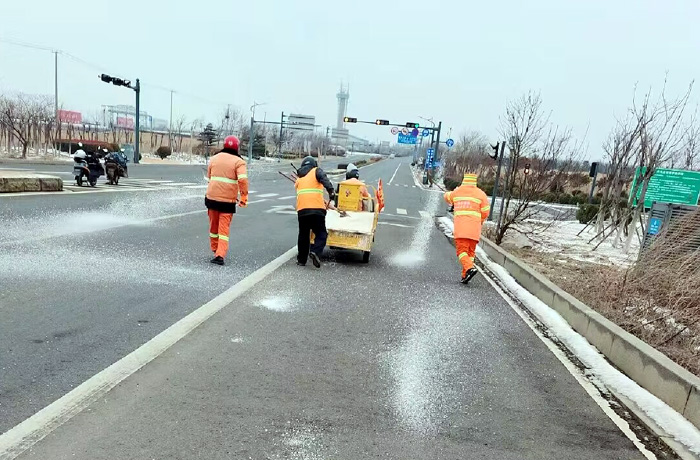 该分公司党员突击队兵分3路,分别来到徐圩大道、港前大道、海滨大道核心路段。生产骨干沈万军、李传武、张树华等同志他们相互配合,手拿铁锨简单有效的进行撒放融雪剂60余吨。发现道路低洼结冰处及车辆转弯口,他们立即下车利用雪铲,有来有回的将冰冻铲除,消除路面一切安全隐患。