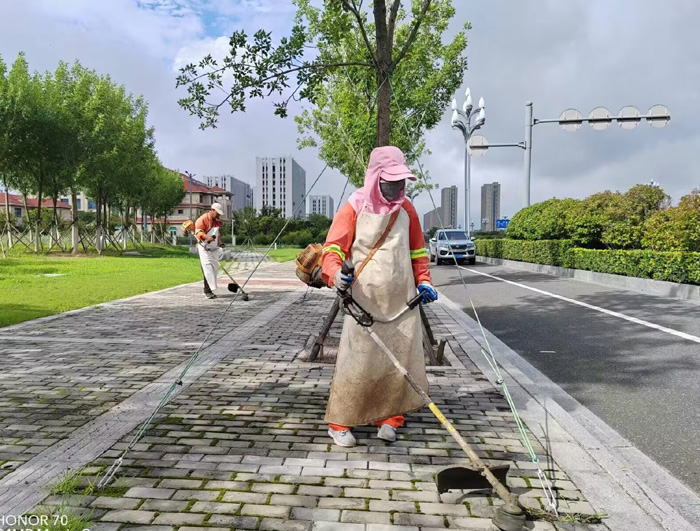 黑色柏油马路上,热浪滚滚,橙色工作服在强烈阳光照耀下显得格外引人注目。女子班组保洁人员在班长龚飞带领下,背着30余斤重的割草机,来回摆动手中机械,忘我工作达7个多小时,“收割”云河南路生活区周边杂草20多处;人工清扫装运施工车辆抛洒石子、泥土30余车,擦洗站台座椅40多个,清掏果皮箱余200只。