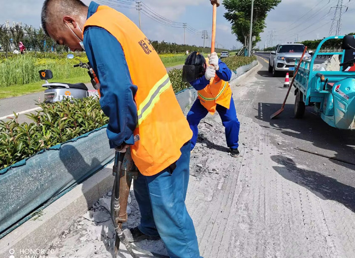 “哪里有急、难、险、重问题,就有党员的身影”。847时许,石化一班班长巡查中发现,石化园区主干道临海公路与石化七道交接处,发现两处近200多米长的混凝土水泥抛洒物,如不及时处理,易造成路面行车安全交通隐患。薛明柱迅速召集队员到达现场,大家无惧灼热阳光暴晒,三人一组,两人一对,不停按动手中电锤,挥动手中铁锤,反复撬动紧贴地面混凝土,豆粒大的汗珠从脸颊两旁滚滚流下,尽管有的同志手磨出了血泡,但仍然坚守岗位。经过近4个多小时的努力奋战,转运打包固体水泥块达200多袋,整洁柏油路面再次还原本色。(杨波)